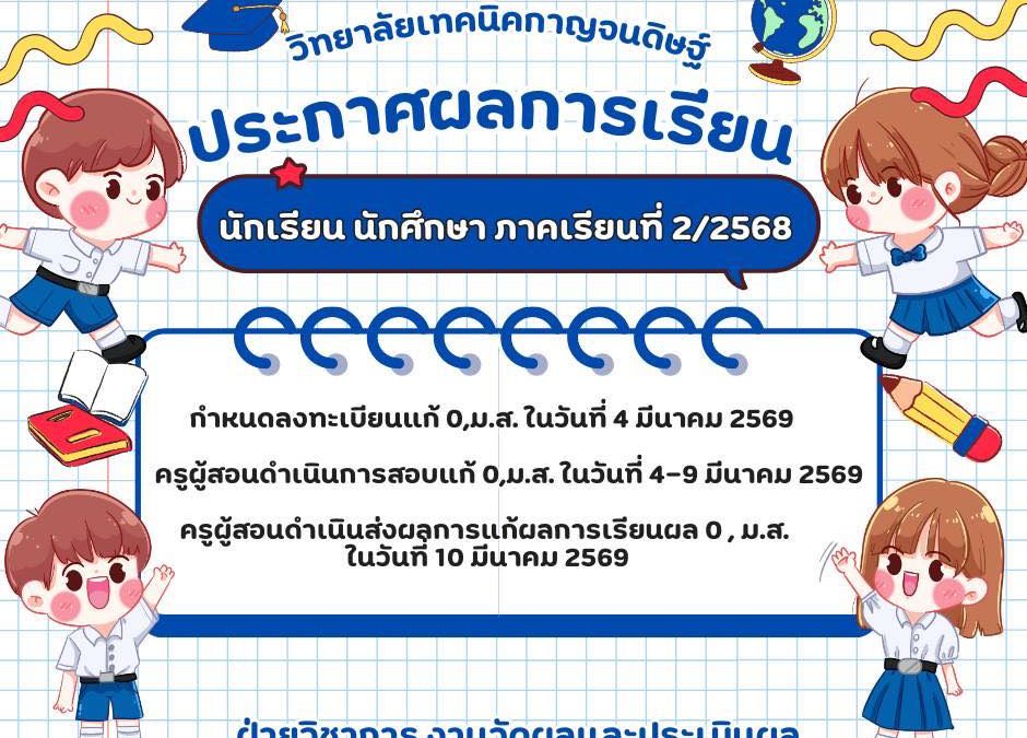 📣 วิทยาลัยเทคนิคกาญจนดิษฐ์ ประกาศผลการเรียน นักเรียน นักศึกษา ภาคเรียนที่ 2/2568